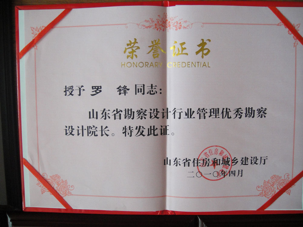 是山東省首批信用等級(AAA)單位,山東省勘察設計行業優秀企業,山東省十佳設計院,山東省工人先鋒號,日照市市級文明單位,日照市重合同守信用單位,ISO9001質量管理體系認證企業,國家級高新技術企業。